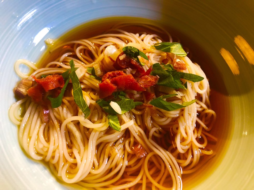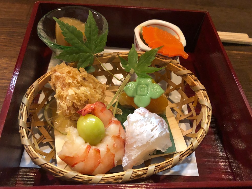 The Onsen is separated by men and women, each side has 5 different types of baths and saunas. I try them all. It is pretty cool to be sitting in the Japanese bath looking at the Seto Island Sea and gazing at the moon. Some of the baths are filled with peonies, hydrangeas and irises. Afterwards dressed in the lounging kimono and pants provided to each guest, I have dinner in the restaurant. I order the local sea bream two ways– sashimi and then diced into a dashi broth and poured over rice, called Tai-Chazuke.