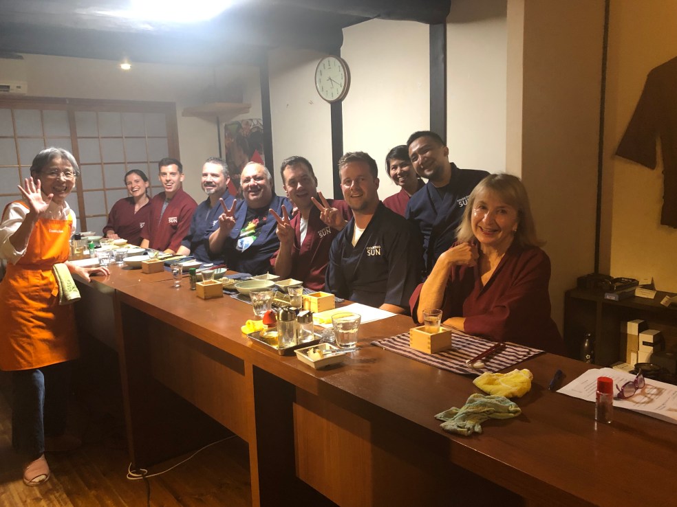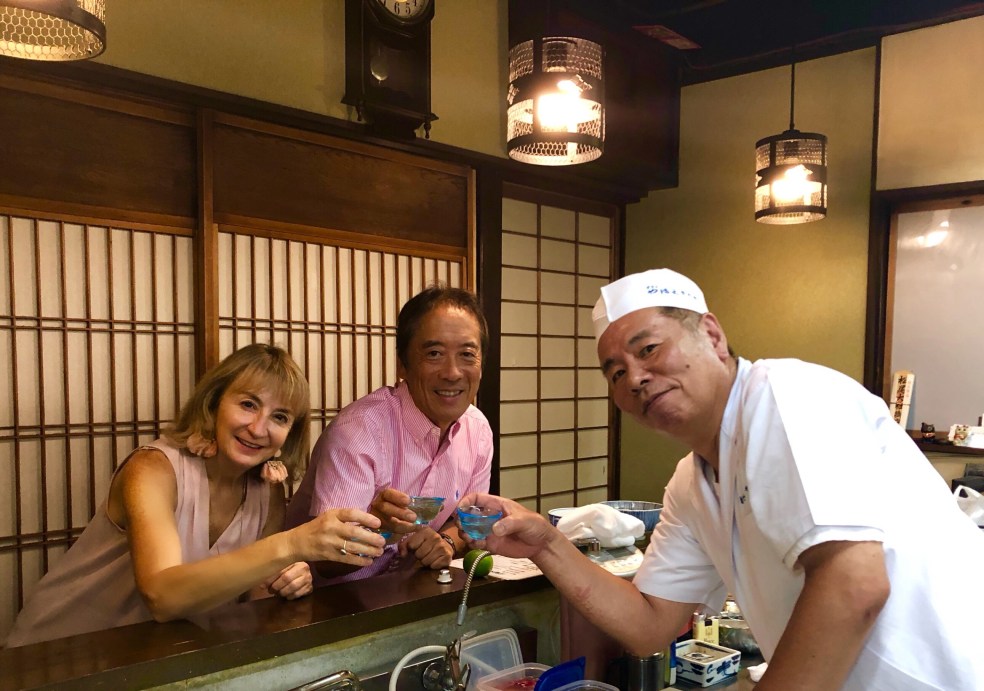 Yumi has suggested a sashimi restaurant nearby for dinner. The fish couldn’t be any fresher with the sea right here. It’s a husband and wife operation and I enjoy watching the sashimi being prepared right before me. Also, sake goes very well with sashimi!