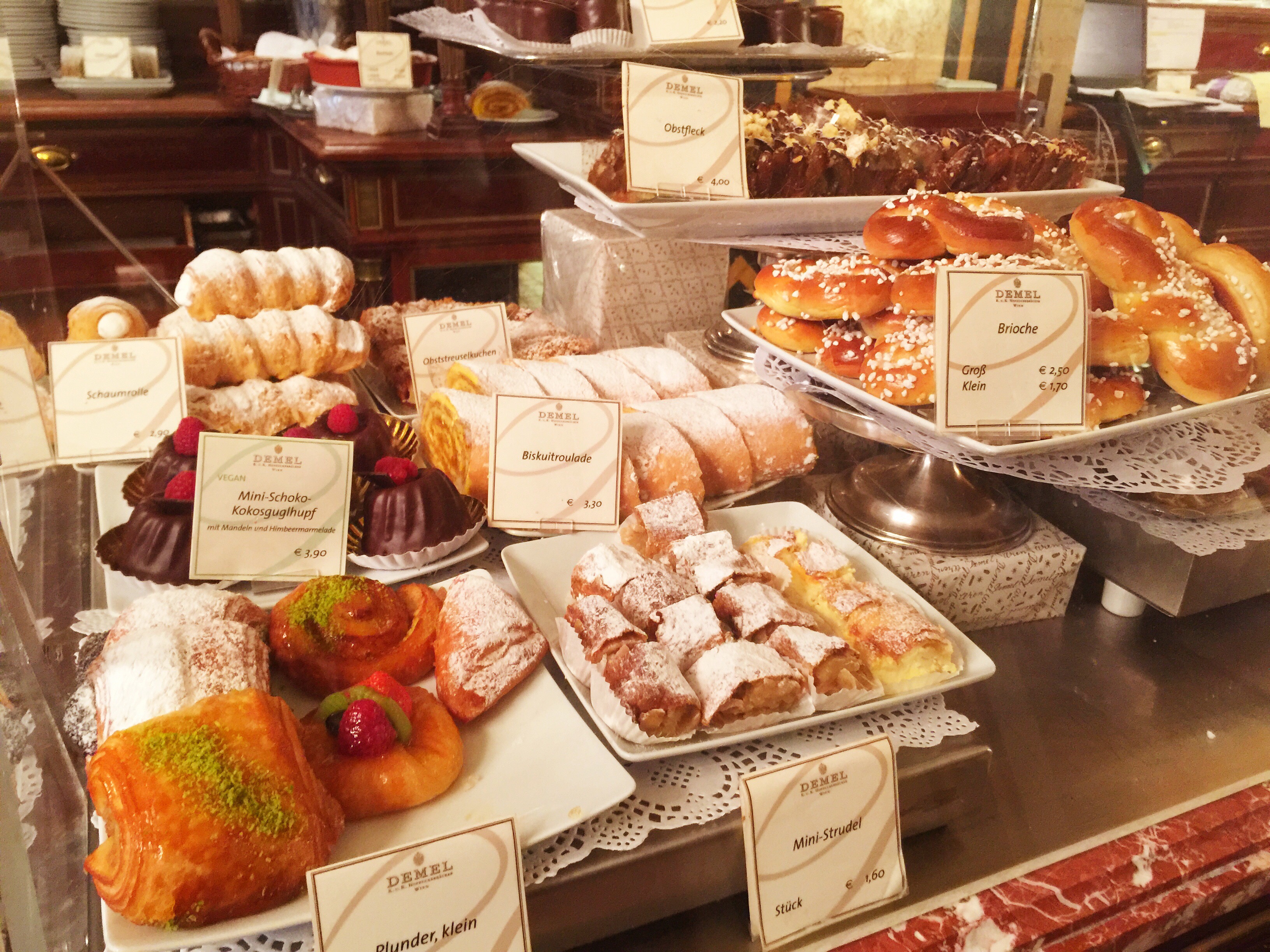 The city is empty at this hour and all the building are glowing as the sun rises. I make my way to the Naschmarkt but I’ll tell the truth I stoped at Demel’s bakery for a mini apelstrudel first.