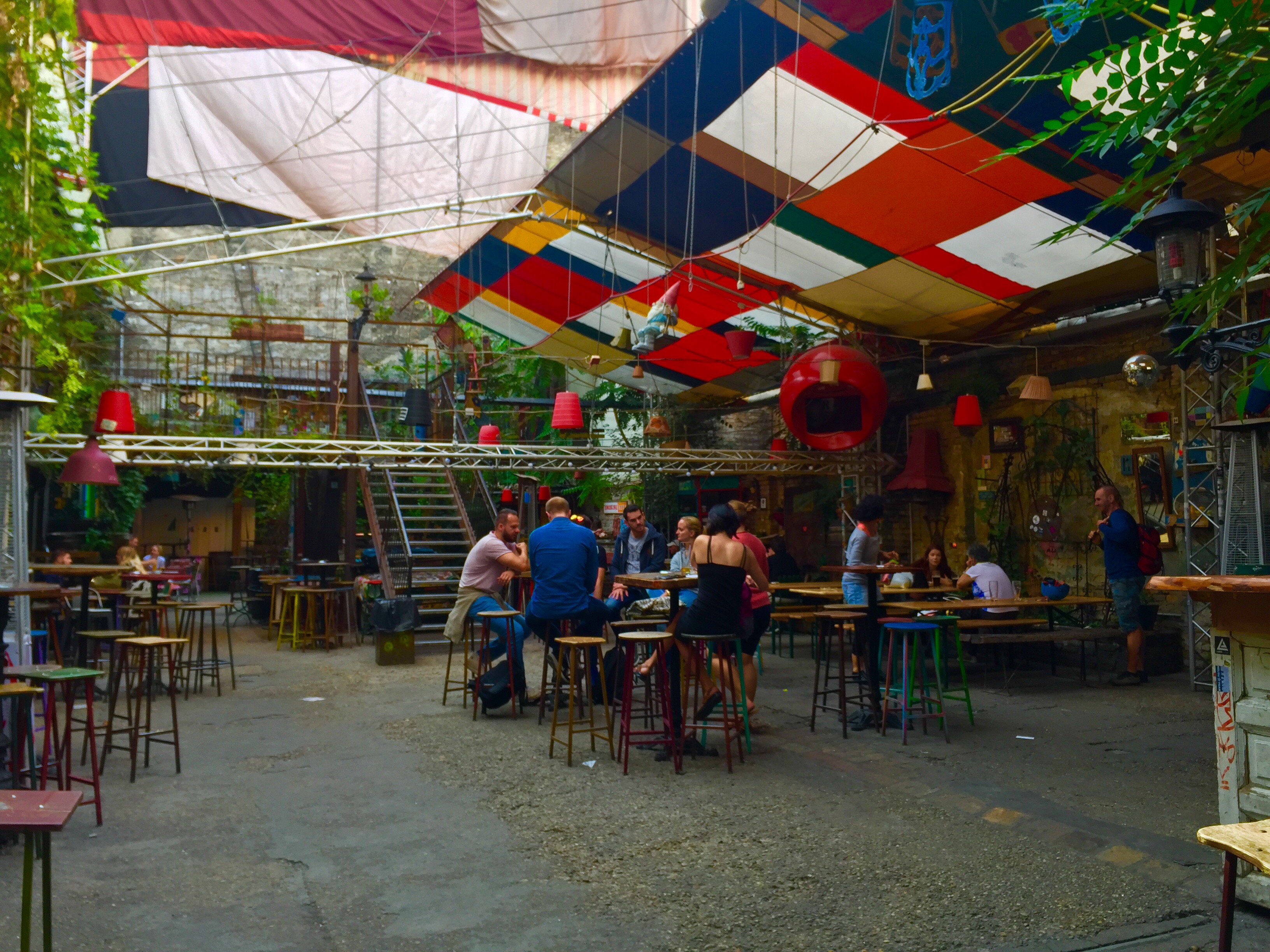Ruin Bars are quirky pubs and clubs that have taken over the city’s abandoned spaces. I head to the back streets and finally come upon the one that started the whole movement. Szimpla.