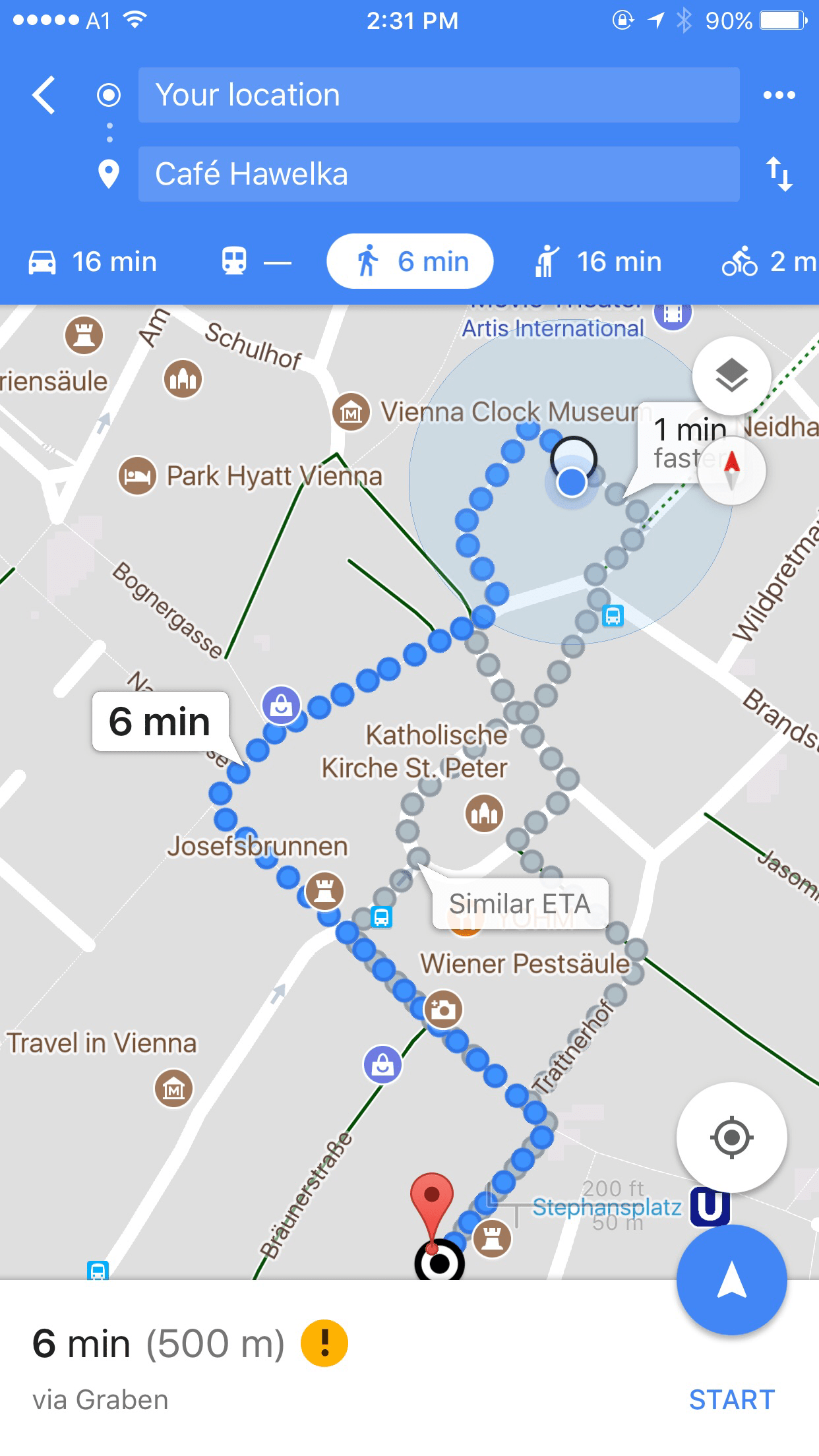 I’m floundering a little with my German when a nice man translates and saves me. We get to talking about travel, living in Vienna, food..his name is Arno and he has a software company. When I mention I’m at the market to get provisions for my friends who are arriving for my birthday, he insist on buying me a birthday coffee and we chat even longer. Super nice guy. I walk on but stop at the Hotel Sacher because Wolfgang, the concierge, has emailed me birthday wishes. He is there and I get his warm birthday wishes in person.