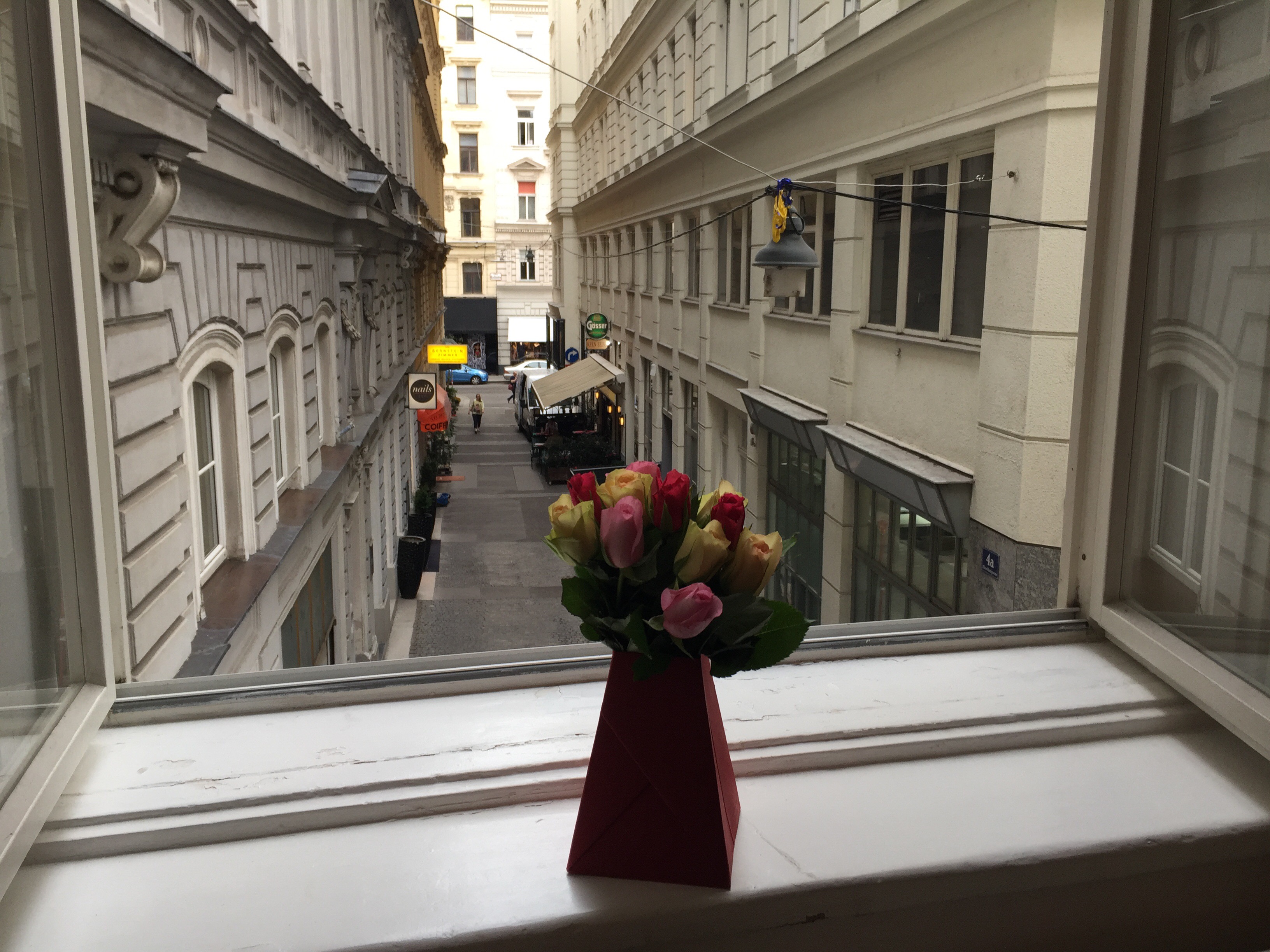 I love the view from the rear windows flung open to the little pedestrian alley where I had earlier arrived.