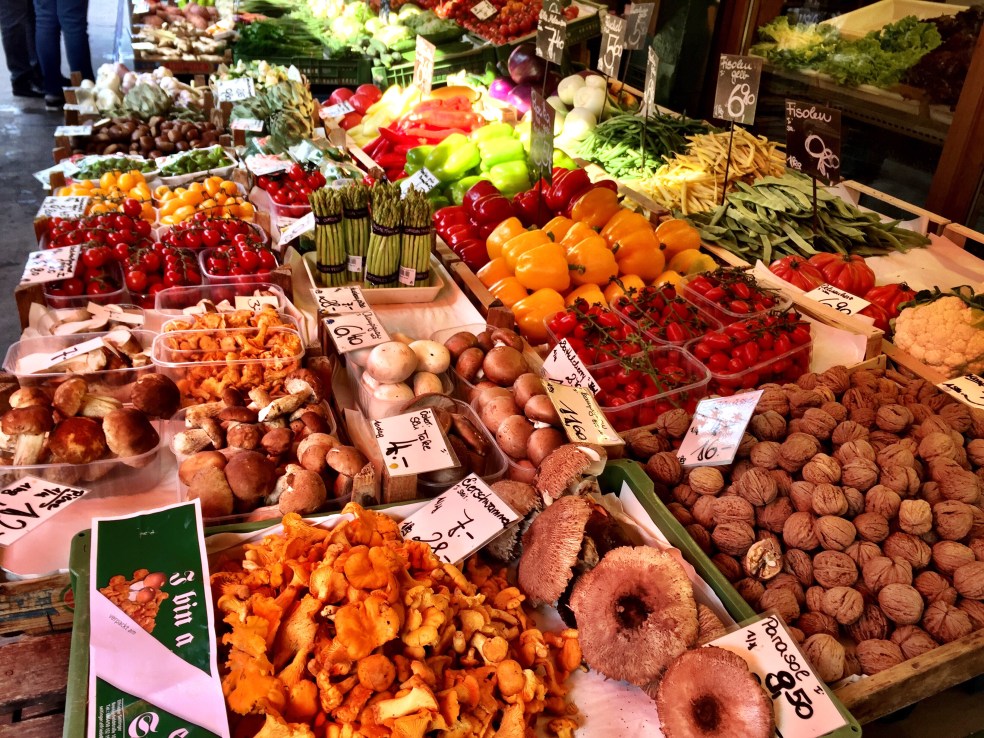 For now I roam the blocks surrounding my place. I met Dario who runs a pretty little coffee shop and Janna, who owns a leather shop and is expecting her baby boy any minute. She tells me she has a choice of taking 1 year off and receiving 1000 euros per month or 2 years off and receiving 600 per month. I see my local market and go in to discover a 3 story gourmet food shop with wine tasting bars in the section where you buy wine, fresh oranic fruit, stunning flowers and floors of tempting new products.