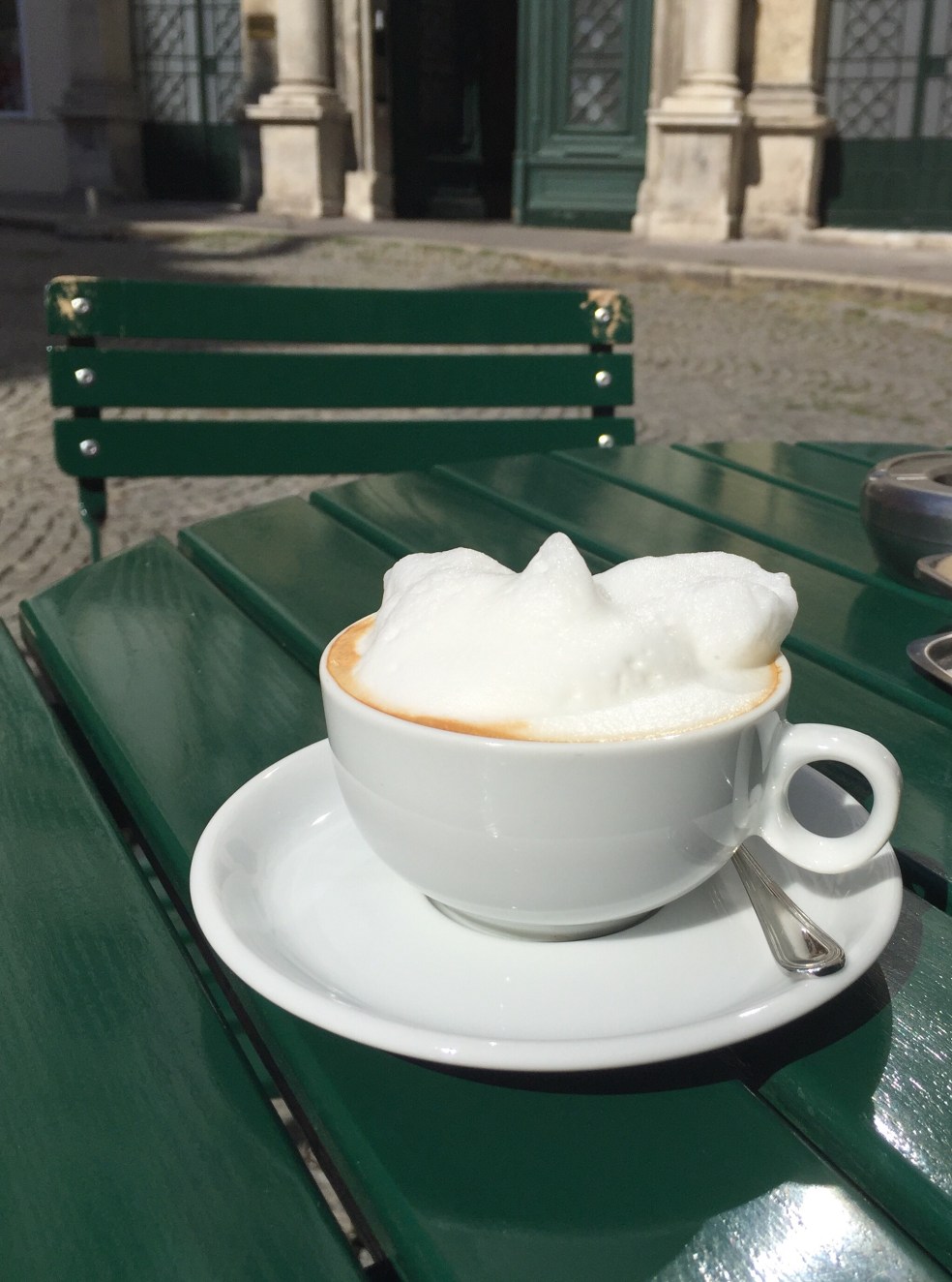 Wolfgang is a man who smiles easily and is so gracious. After meeting me in the lobby, he asks if I wanted to have coffee at the hotel or walk to the Naschmarkt. To the surprise of no one, I say let’s walk. It is a beautiful sunny day in Vienna. We walk and talk easily. He tells me his background at the hotel and about his family who he adores. Wolfgang has been a concierge for 34 years. He is 59 years old and he started at the world famous Hotel Sacher when he was 18 years old. He worked there for several years and then went off to run a restaurant for a while. He then came back to the Hotel Sacher and has been there ever since. We find a sunny outdoor spot at one of the many restaurants in the Naschmarkt. Wolfgang graciously has the waiter bring us two Weiner Melanges— the local drink of Vienna and his favorite.